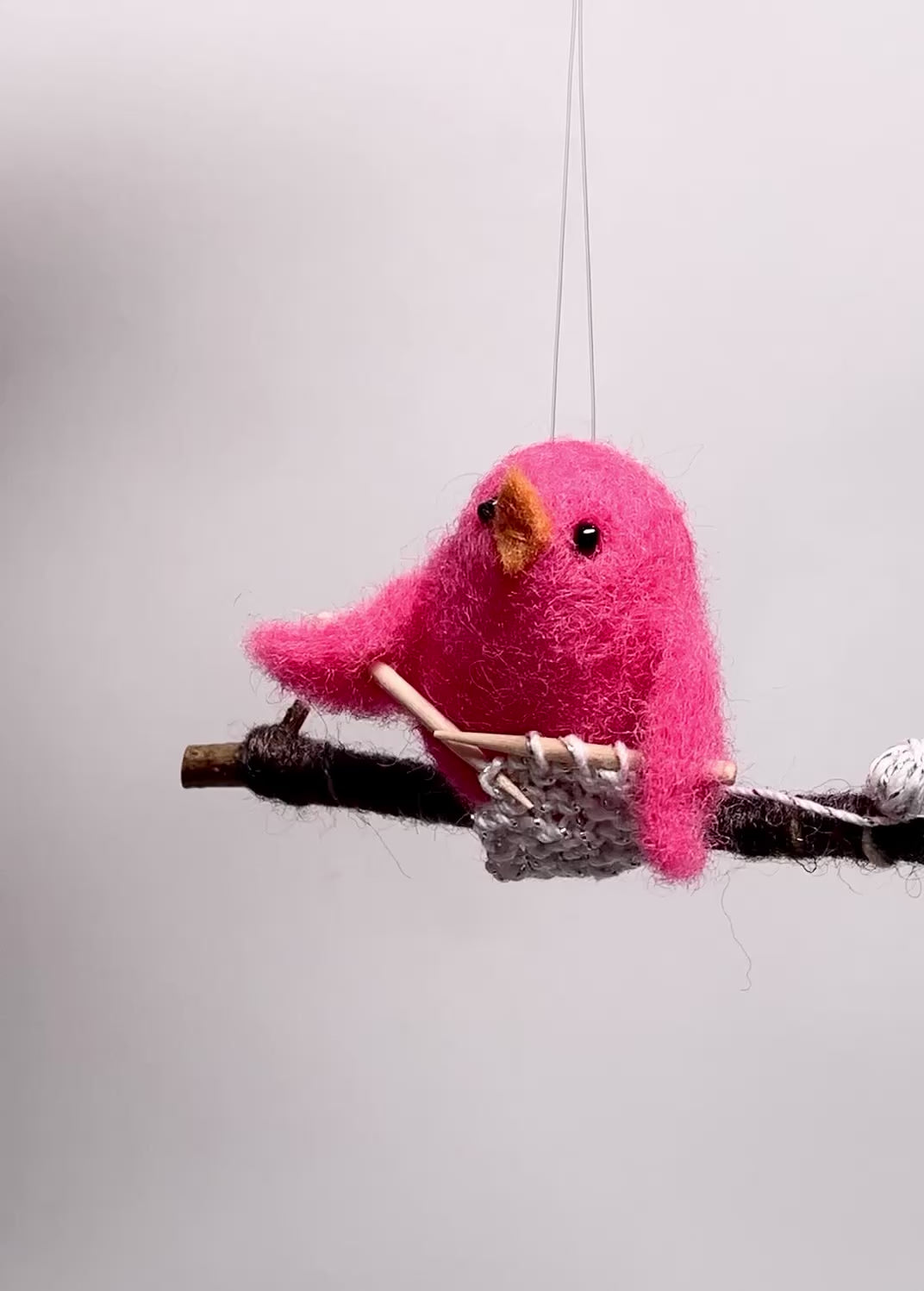 Celebrate knitting and the knitter in your life with this sweet needle-felted wool bird ornament. All elements are designed and hand-made by me in my western MA studio.
